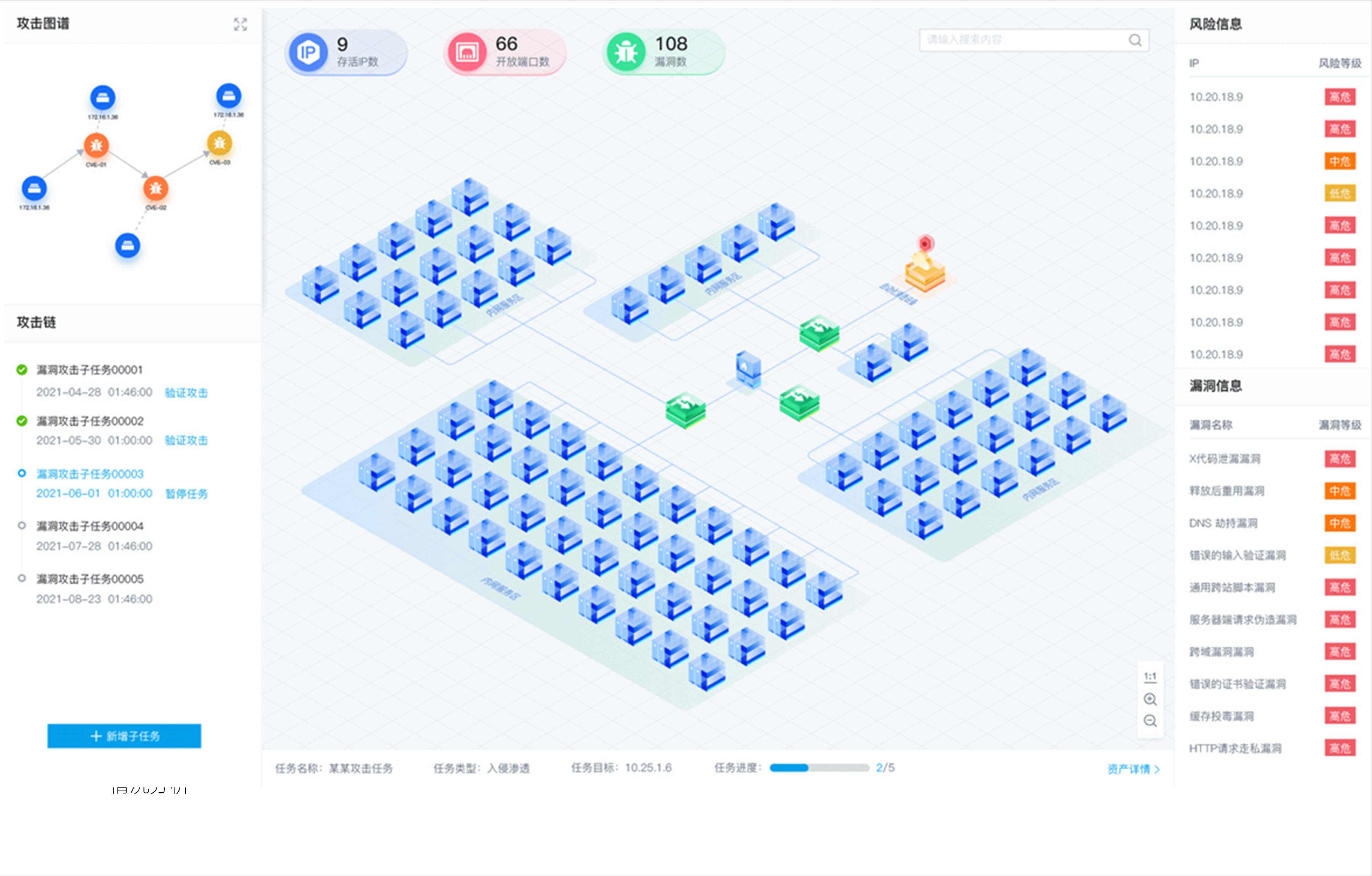 | 能夠基于客戶提供的目標環境發現已知漏洞,挖掘未知漏洞,提供漏洞的利用和驗證腳本并構建對應的風險場景,讓漏洞分析更加真實、精確。 | 利用提前預置的評估流程,客戶可根據需求菜單式選擇評估節點,快速生成目標評估任務單,評估體系規范,過程可管可控。 | 深入了解目標網絡、目標設備脆弱性信息,直觀展示目標設備、目標系統、目標網絡的安全性、合規性信息。 |