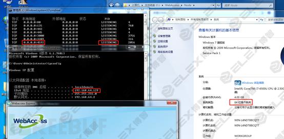 下載AdvantechWebAccess V.8.0軟件,在Win7x64虛擬機中安裝,查看端口開放情況,確認軟件運行正常: