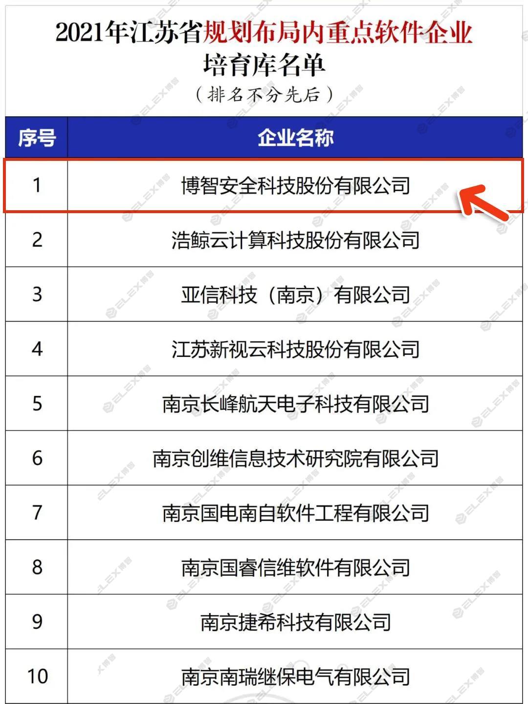 近日,江蘇省工業(yè)和信息化廳(以下簡稱“省工信廳”)對2021年江蘇省規(guī)劃布局內(nèi)重點(diǎn)軟件企業(yè)入選名單進(jìn)行了公示,博智安全科技股份有限公司(以下簡稱“博智安全”)憑借領(lǐng)先的技術(shù)優(yōu)勢,經(jīng)企業(yè)申報、各市評估推薦、省工信廳復(fù)核、專題會審等程序,入選2021年江蘇省規(guī)劃布局內(nèi)重點(diǎn)軟件企業(yè)。