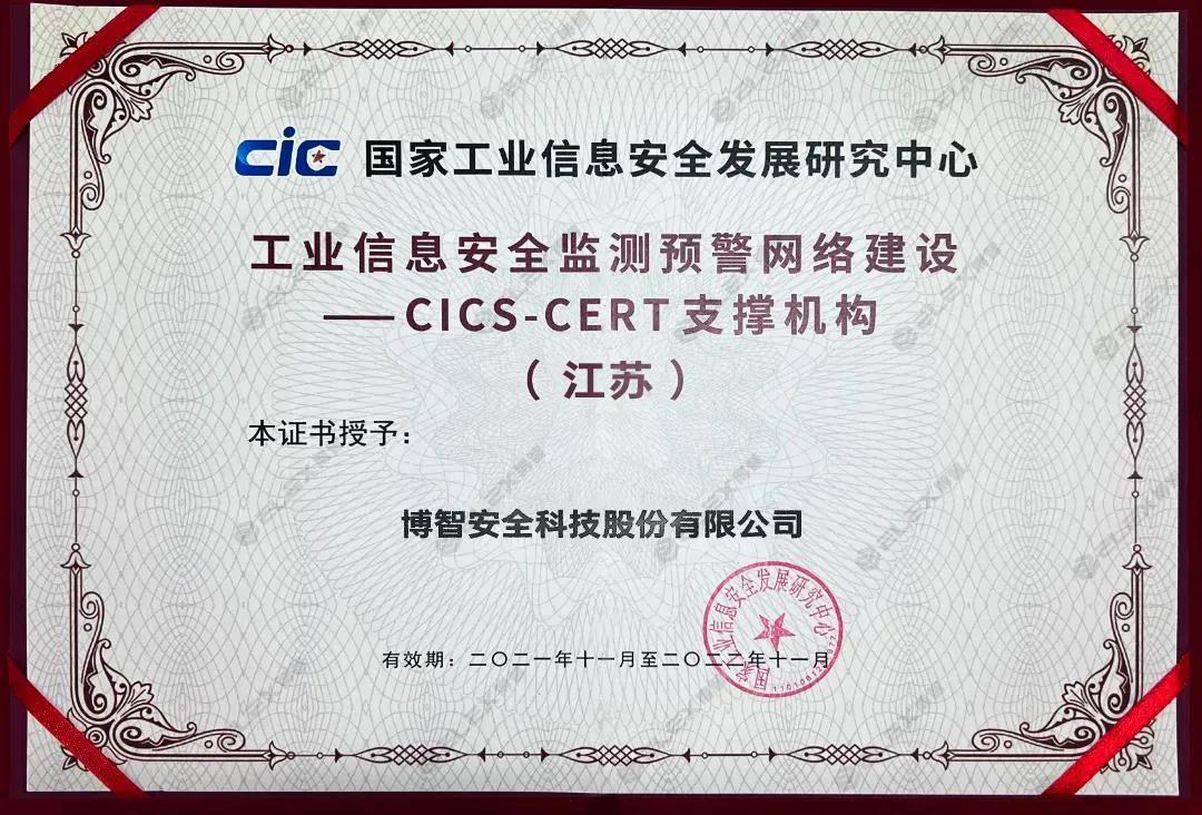 會上,博智安全獲評“工業信息安全監測預警網絡建設——CICS-CERT支撐機構(江蘇)”。作為支撐單位,博智安全將在江蘇省開展省內工業信息安全監測預警支撐工作,積極參與網絡節點平臺的研發、部署、運營等工作,為地方提供必要的人員和技術支持,并配合國家工業信息安全發展研究中心開展風險研判、處置驗證等工作,以合作方式共建國家工業信息安全監測預警網絡。