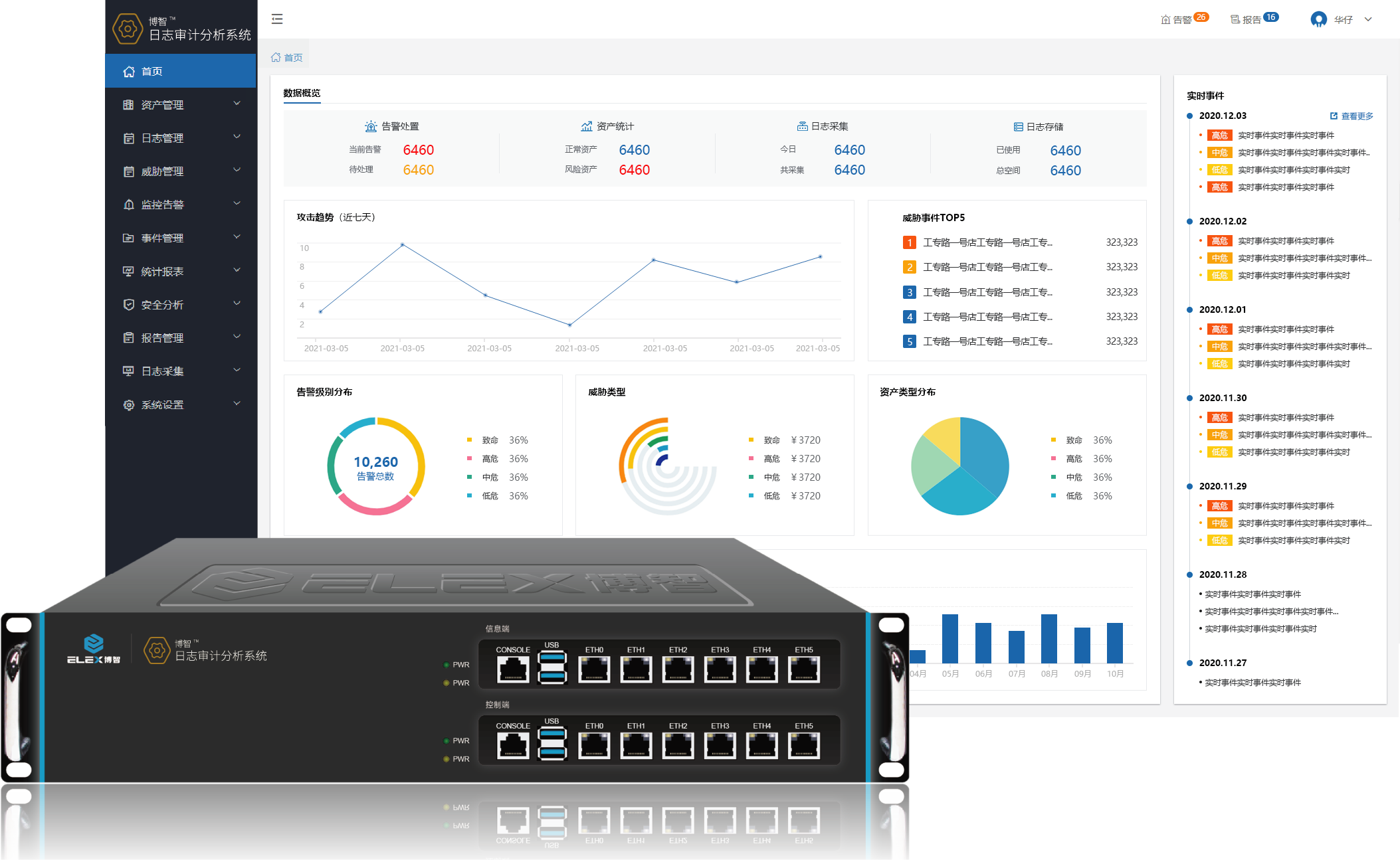博智日志審計分析系統能夠實時不間斷地采集匯聚企業中不同廠商不同種類的安全設備、網絡設備、主機、操作系統、用戶業務系統的日志信息,通過豐富的關聯分析方法、機器學習協助用戶進行安全分析及合規審計,及時、有效的從各類設備的海量日志中發現異常安全事件及審計違規,滿足日志審計的合規要求。